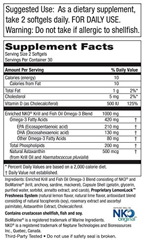 While Fish Oils are a greater source of DHA and EPA, they do not contain the valuable phospholipids found in Krill Oil. Krill Omega 50+ contains both Fish Oil and Krill Oil... the BEST of BOTH worlds in one single formula. Because Krill Omega 50+ is fortified with ultra-pure, concentrated Fish Oil it contains 3X more DHA & EPA than Krill Oil alone. In addition, Krill Omega 50+ provides 500 IU of Vitamin D3, as well as 500mcg of the valuable carotenoid, Astaxanthin.