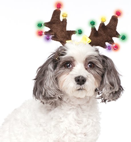 Feature : Headband with reindeer antlers / Colored lights / S/M Designed for dogs size of Chihuahua, Yorkie, Maltese, Pekingese, Pomeranian, toy breeds and puppies / Let your best friend join the fun with a costume or accessory from Rubie's Pet Shop / Look for Rubie's holiday costumes for the entire family