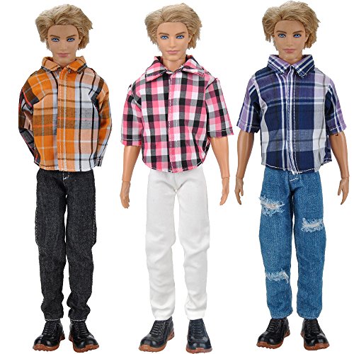 - 3 sets = 6 pcs E-TING handmade clothes for 12 inch Ken Doll. ( As seen in picture, the doll is not included. )