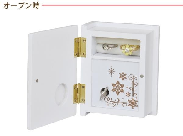 雪の結晶の絵柄の表紙を開けるとオルゴール、さらにリングさしが付いています。