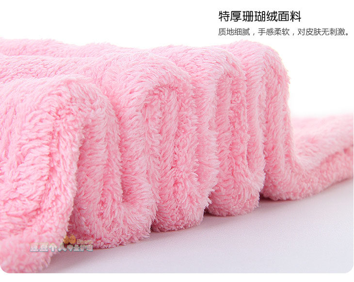 概要: 加厚长毛珊瑚绒,超强吸水,快速干发不伤发,长发、短发都适用,男女老少均适宜。