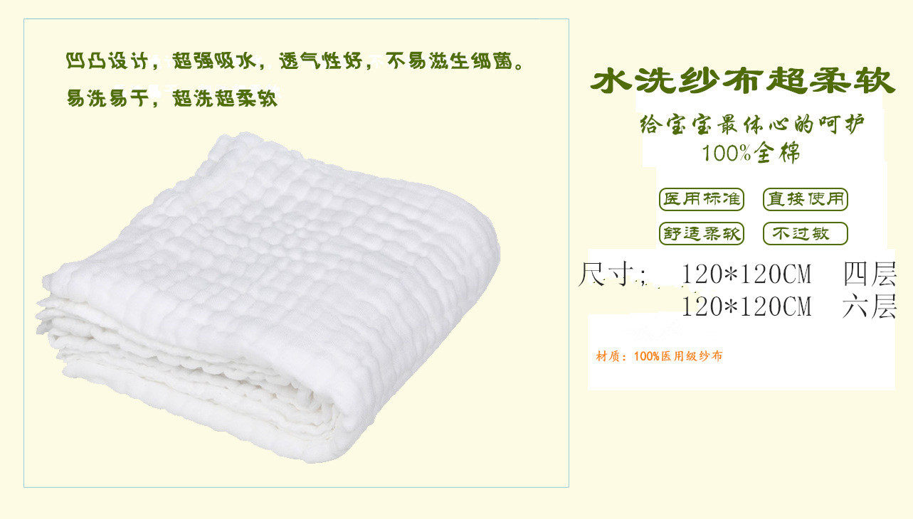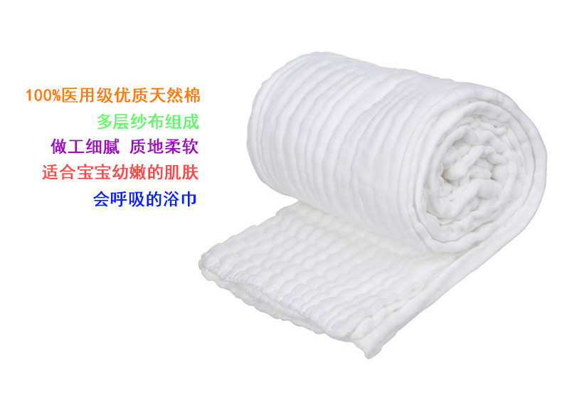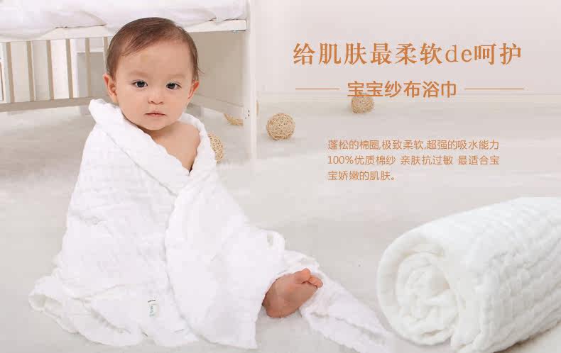 100%纯棉医用纱布婴儿大浴巾,超柔软,超强吸水透气不易滋生细菌,帮助妈妈守护可爱宝宝。
