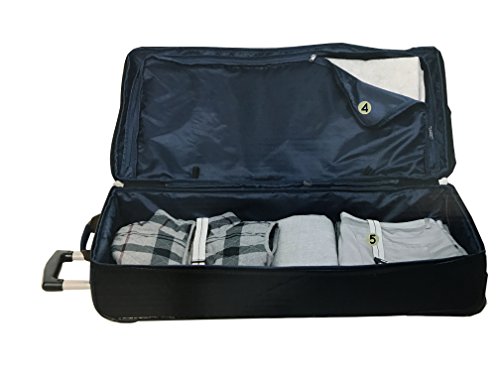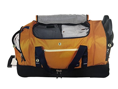 Studio : The Skyway Luggage Co Publisher : The Skyway Luggage Co Binding : Apparel Product Description The Skyway Luggage co. - Travelling the world since 1910. Made the high quality globe trekker 2 compartment rolling duffel bag for your traveling. The rolling duffel offers a relaxed style and modern convenience for extensive traveling, making it the perfect option. 2 main compartment rolling duffel. Constructed of durable rip stop nylon. Adjustable cinch strap and tie down straps . Multiple accessory pockets allows to travel essentials. Floating door pocket to pack in two separate compartment or in a single open area. Extra large capacity. In-line skate wheels. Retractable locking handle. Easy access drop bottom compartment. Dimension: 31l x 15.9h x 14.5w. Weight: 8.4 lbs. 0