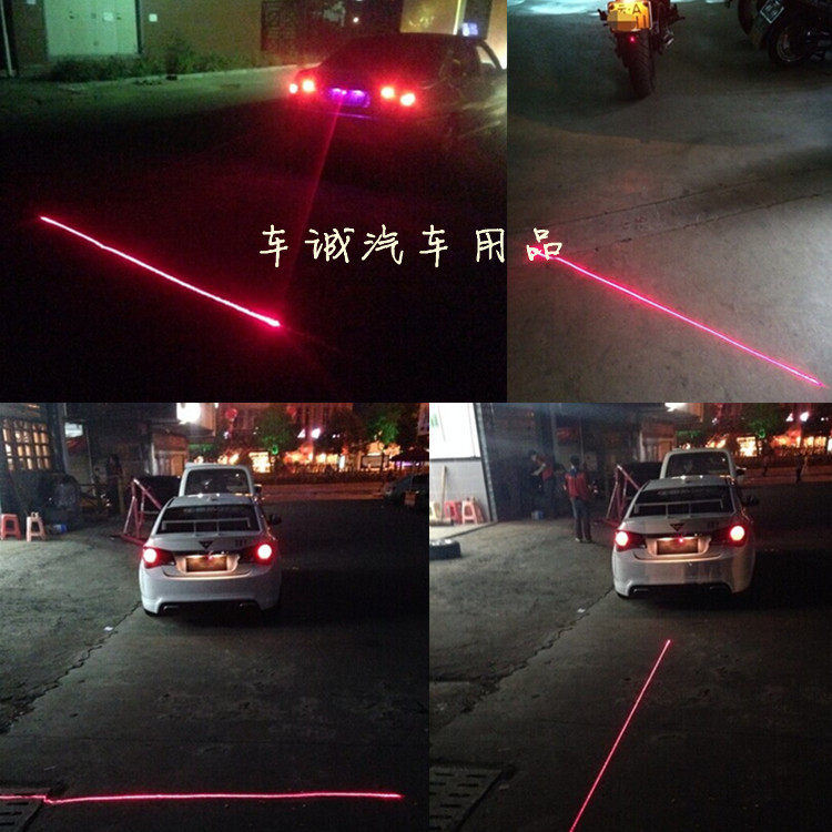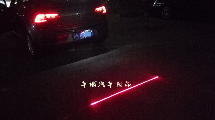 If the visibility is good, the fan beam generated after the micro oblique laser beam when the road surface after the formation of a red alert for the car. After this line depends on the width of the car and the vehicle in front of the car from, for example, from a distance of 30 meters looks, this line width of the vehicle, like a "stop line", after a clear warning to keep the safety car car distance!