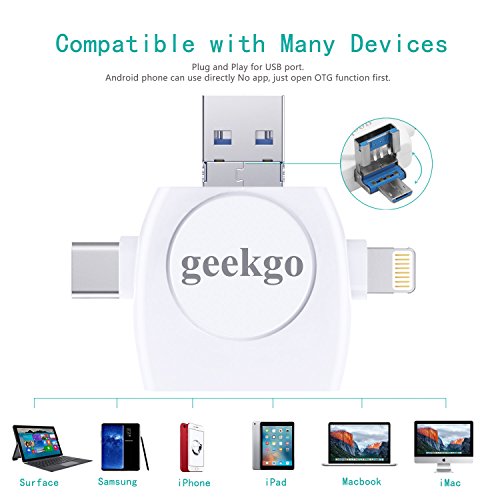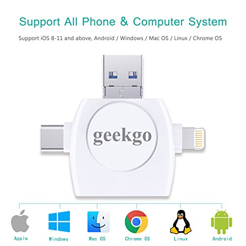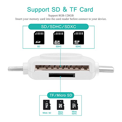 *4 in 1 design card reader,small, portable design for USB C/Type C/Lightning/Micro USB/USB connector.(Android phone must open OTG function)