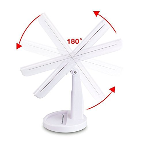 - 180 DEGREE FREE ROTATION:The mirror stands on your countertop and can be freely adjusted and fixed ensuring a perfect and comfortable viewing angle.And the base recess can be used to store hairpin,earings,necklace,bracelets etc.