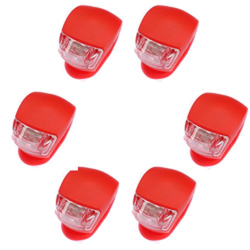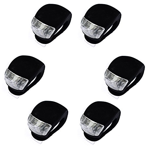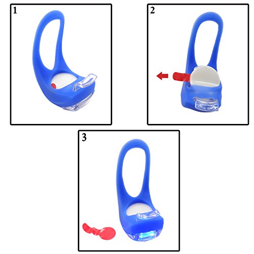 Appearance color with Light color: black with white light, white with white light, yellow with yellow light, red with red light, blue with blue light, green with green light 3 modes: steady, emergency flash, slow flash Material: elastic silicone Waterproof: YES Battery: 2 x CR2032 button batteries (included) Size: 3 x 4 x 3 cm(L x W x H) Weight: 60 g/pcs