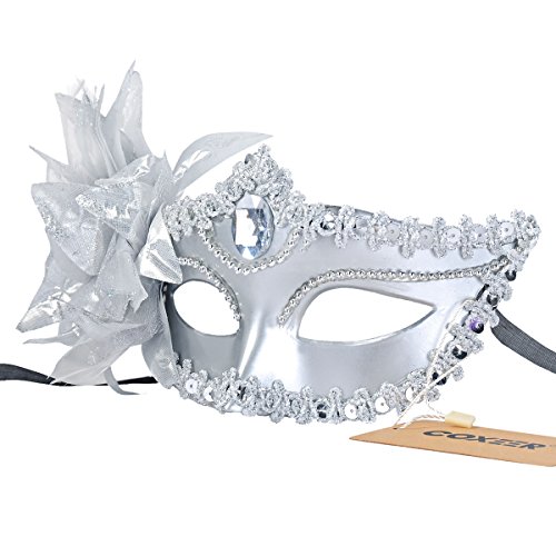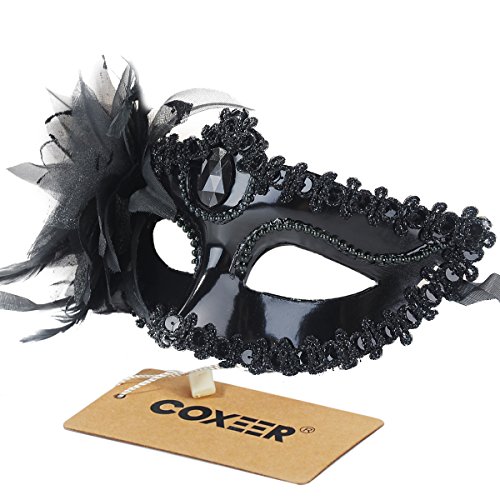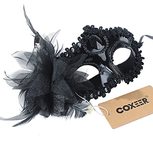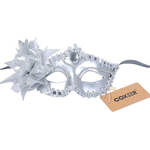 -. Title : Coxeer Masquerade Mask Pure Color Venitian Mask Mardi Gras Mask with Flower