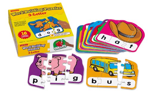 Studio : Lakeshore Learning Materials Publisher : Lakeshore Learning Materials Binding : Toy Product Description Our simple three-piece puzzles introduce children to basic word-building skills...as they piece together easy-to-read words like cat, bus, jet and more! Each kid-pleasing puzzle features a familiar three-letter word, plus a corresponding picture. Children just fit the pieces together to complete the pictures--and build simple words at the same time! Set includes 16 self-checking puzzles--for tons of no-fail word-building practice. The sturdy chipboard puzzles are 5" x 5" each. 0