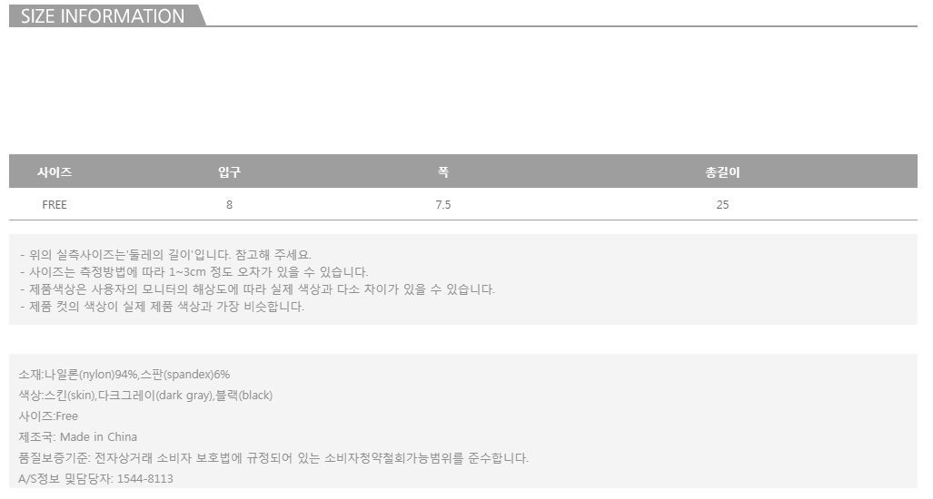 일반 스타킹 보다는 조금더 짱짱한 느낌의 아이템으로