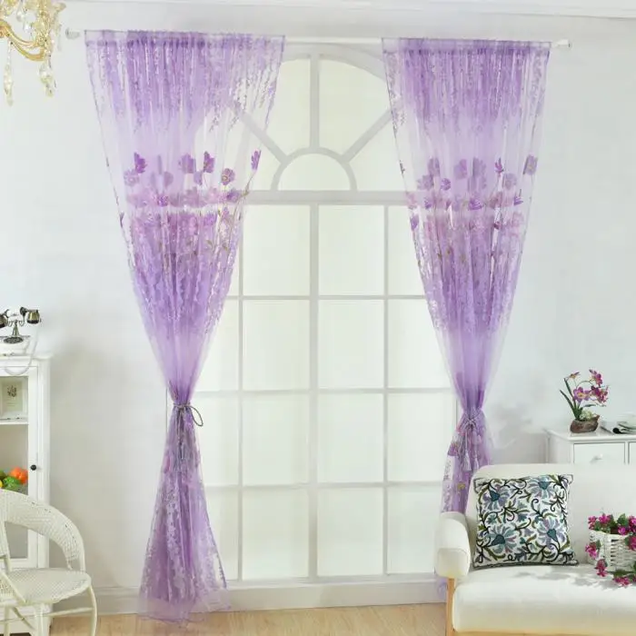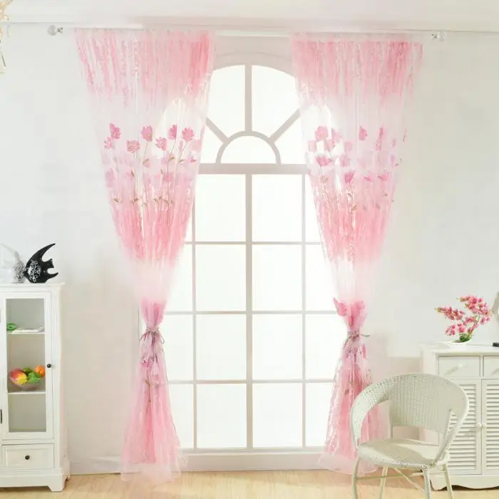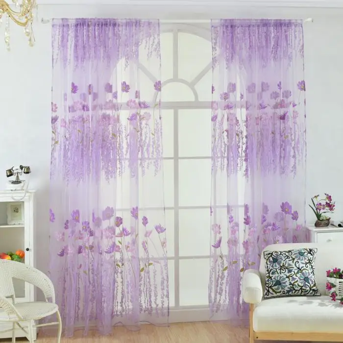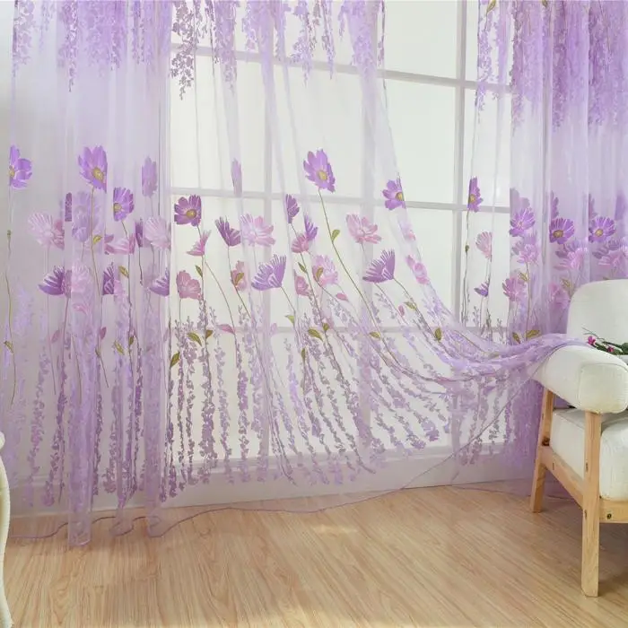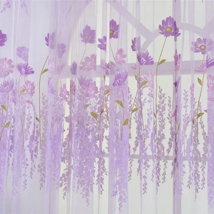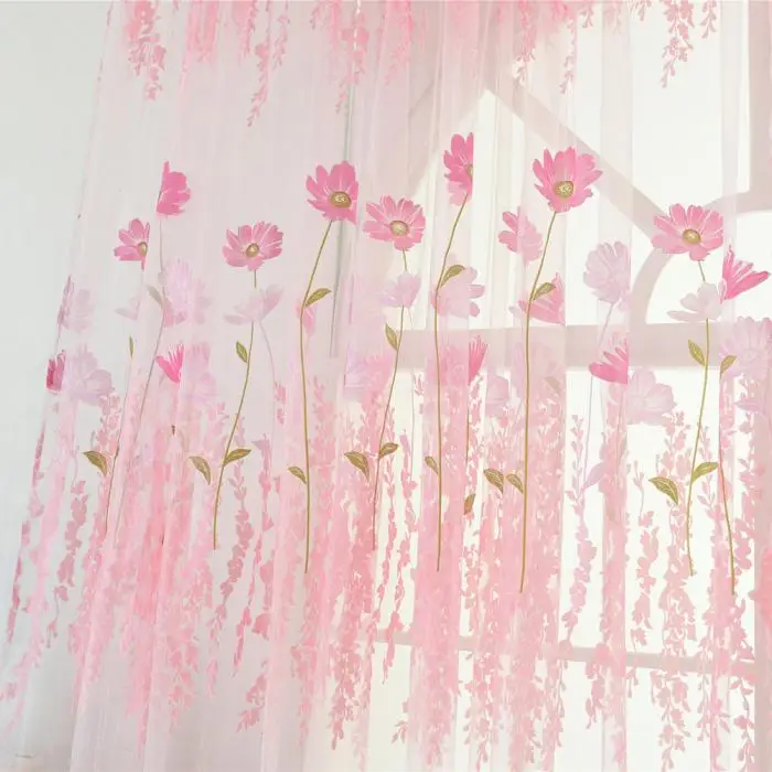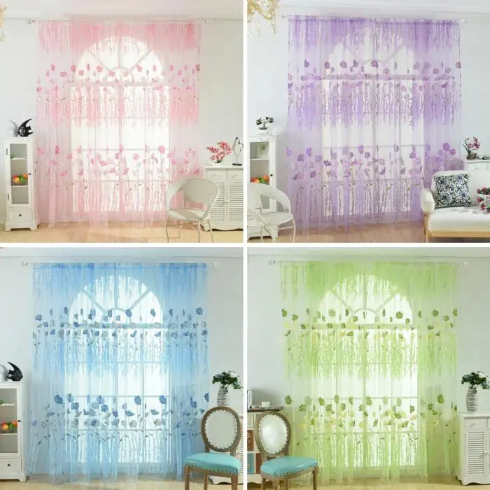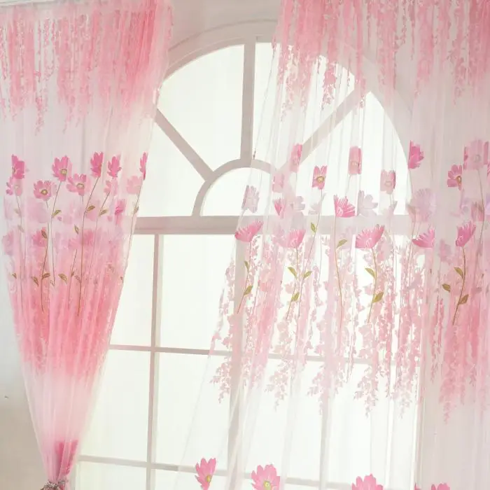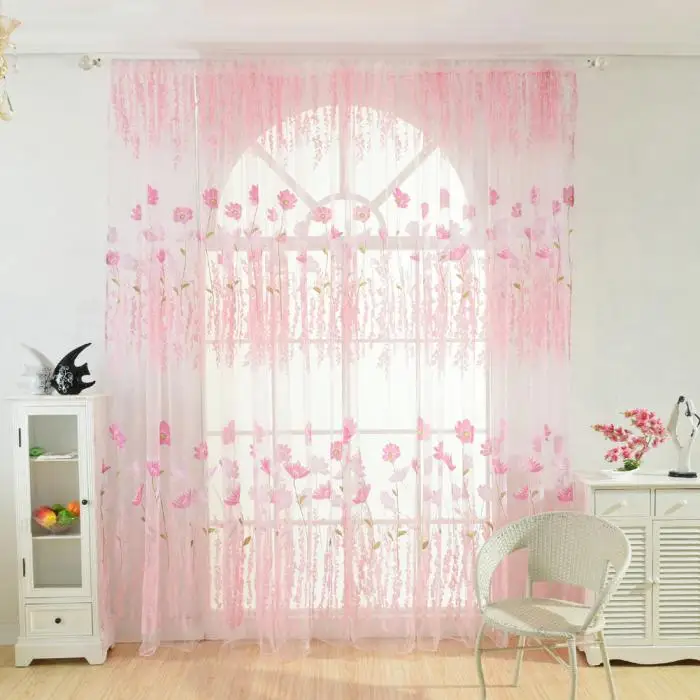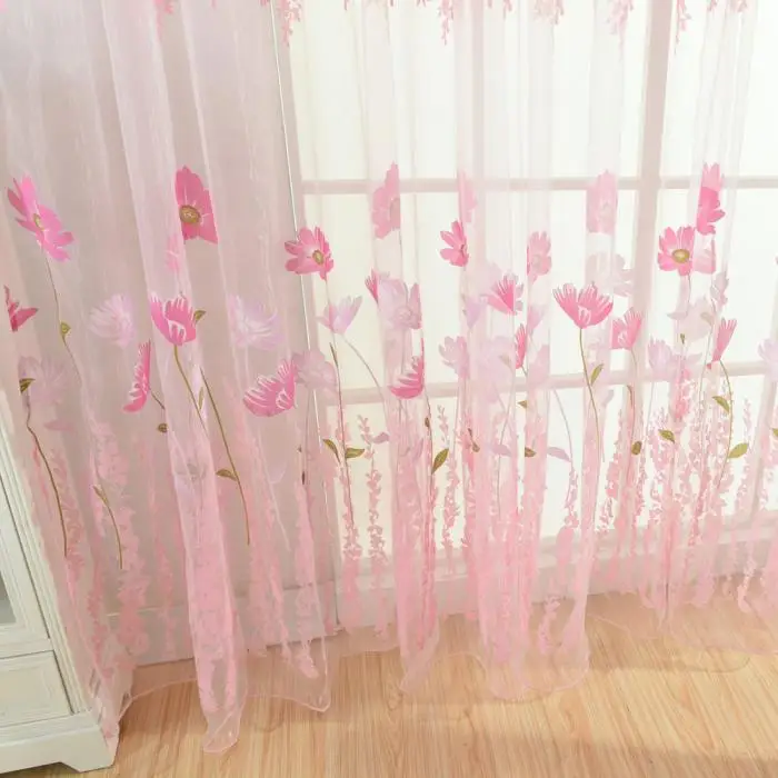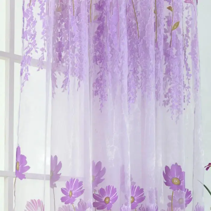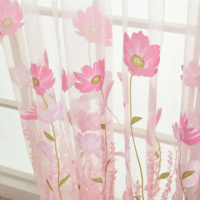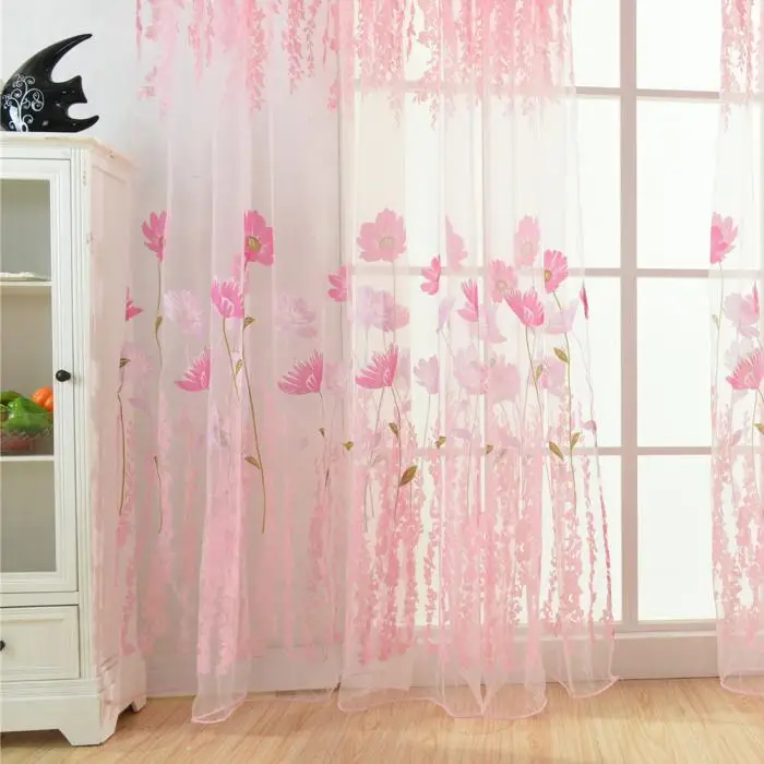 Flower Scarf Sheer Voile Door Window Curtain Drape Panel Valances for Living Room Bedroom Office MYDING