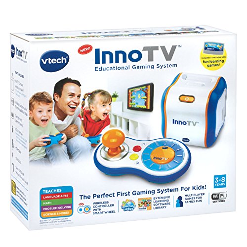 -. Feature : Perfect for toy for preschoolers, InnoTV is an educational game that is TV-connected with an easy-to-use wireless controller; intended for toddlers and kids ages 3 to 8 years / InnoTV comes with four fun learning games that introduce kids to language arts, math, science and more; 2 multiplayer educational games that are fun for the whole family (additional controller sold separately) / Educational toy comes with an easy-to-use wireless controller with a joystick and smart wheel features motion control so your child can tilt and shake it to play select games; perfect for both right and left handed kids / InnoTV is compatible with a variety of InnoTab Max cartridges from VTech toys; Wi-Fi enabled for downloading additional games and content and 8GB of memory that is expandable up to 40GB (with a 32GB microSD card, not included) / Use your smartphone or tablet to personalize your child's profile, play multiplayer games and customize the toddler learning content in certain games