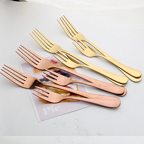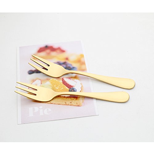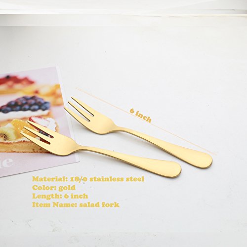 Sherily 12-Pieces Salad Forks Set, 5.5-Inch Gold Reusable Metal Stainless Steel Extra-Fine Teaforks