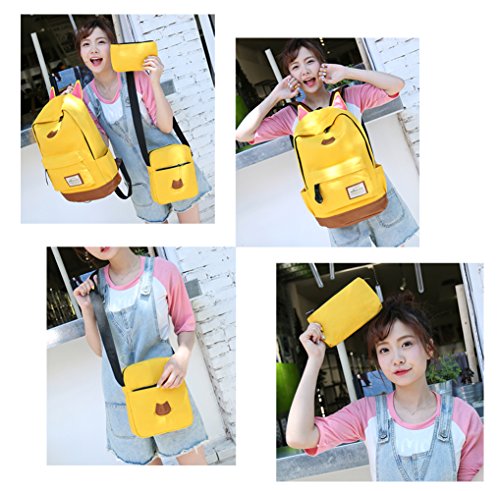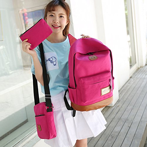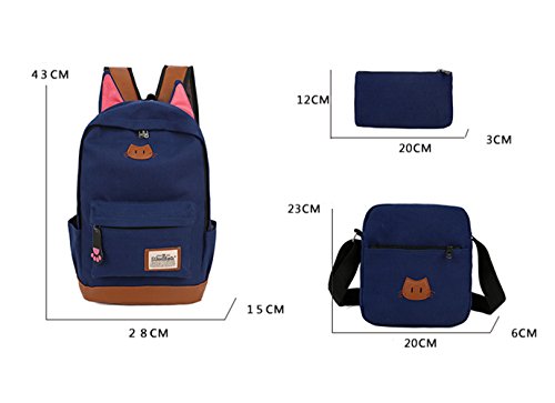 Features ♥ 1.This backpack is designed by ourself,it's most popular with young people due to its lightweight,lovely and fashionable ♥ 2.Adjustable padded shoulder straps for carrying comfort,you can adjust the length according to your demand. ♥ 3.The bag is made of high quality PU leather and canvas,it is durable strong and long lasting. ♥ 4.Backpack size: 16.9"*11"*5.9"(H*L*W);Shoulder bag size: 9"*7.8"*2.3"(H*L*W); pencil pouch/purse: 4.7"*7.8"*1.1"(H*L*W) ♥ 5.The bag suit for school, working, sports, picnic, shopping and other outdoor activities. Package Includes ♥ 1* Backpack, 1* Shoulder bag, 1* pencil pouch/purse Note ♥ Measured by hand, there might be 1-3cm measurement error. ♥ Little smell is normal for a brand new item. Putting it outside for few days,the smell will disappearing. ♥ There might be a little color difference due to the monitor, camera or other factors, please refer to the physical item. 0