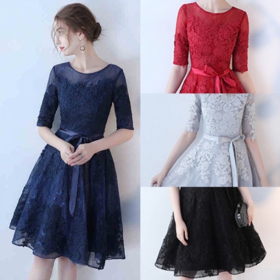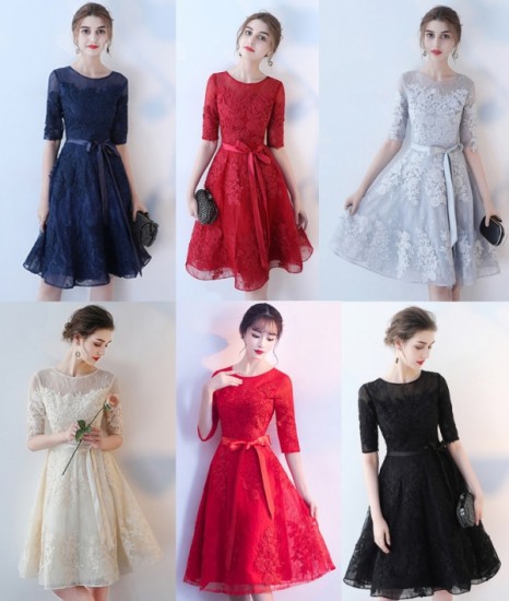 パーティードレス ひざ丈 ワンピース 花柄レース 刺繍 チュール 透け感 エレガント 大人 上品 お呼ばれ ウエストリボンdrgz2586