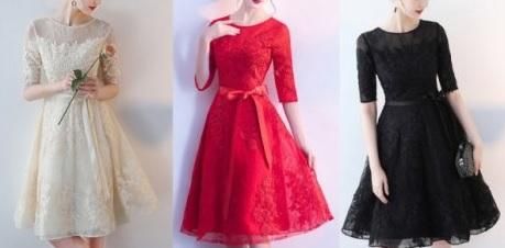 花柄刺繍入りレースの、ひざ丈ワンピース。