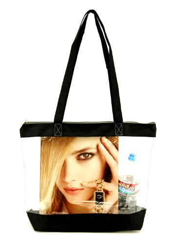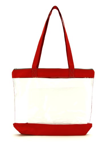 -. Binding : Apparel -. Brand : Tote Bag -. Department : unisex-adult -. Feature : Zippered top closure. / Double Strap: 26 inches. / Colored fabric bottom and handles. / Size: 15.50" W x 11.00" H x 4.00" L / Clear PVC with polyester bottom and handles. -. ProductGroup : Apparel -. ProductTypeName : BAG -. Size : 15.50" W x 11.00" H x 4.00" L inch -. Title : Medium Size Clear Work Tote Bag/ Shoulder Bage/ Security Tote bag
