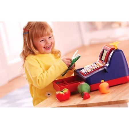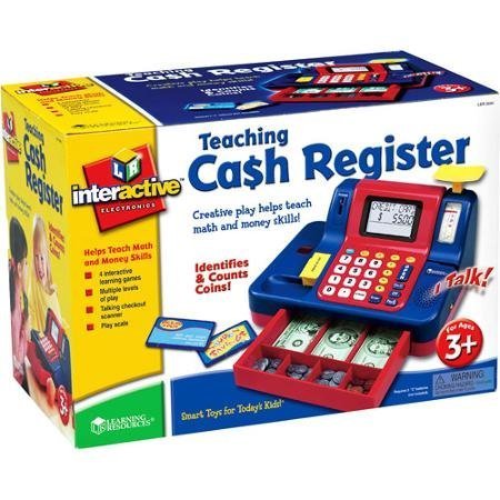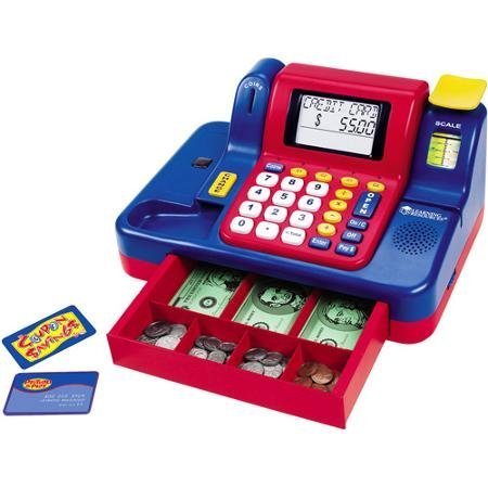 -. Feature : Features four games that increase in difficulty as a player advances through them Great for teaching basic calculator skills Comes with play money, coupon and pretend credit card / This Learning Resources cash register requires three C batteries (not included) Auto-off function saves battery power Cash register toy with a coin slot, a built-in scanner and a weighing scale / Designed to help introduce math skills such as addition, subtraction and the place value system Kids can also learn coin and bill identification / Encourages social thinking, critical thinking and interaction skills Bright colors encourage and enhance play Would make a great gift for your favorite little cashier / L x W x H: 14.4 x 10.1 x 8.1