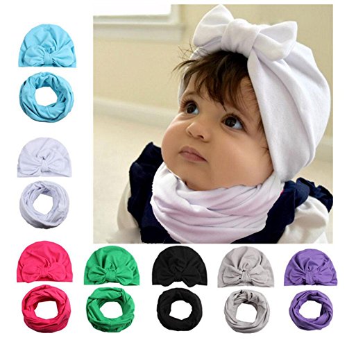 Binding : Apparel Product Description Specification:suit for: Baby girl and boy at 0 months-6 years old. Material:Cloth soft cloth material. Color:See the photos,infant bright solid color:Green,Blue,Purple,Black,White,Hot pink,Pink,Gray. Size:see size photos,19.5 cm*17.5cm(Elastic ) Bowknot size about 15cm. baby Bow-knot hat and plain scarf is a good choice for your lovely baby! Actual item color may slightly vary from the images. Package Included: 1 x baby hat; 1 x baby scarf. 0