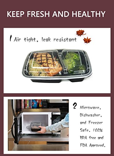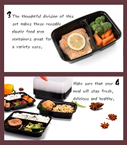 VERSATILE FOOD STORAGE CONTAINERS: The convenient dimensions (9 x 6 x 2inch) and the thoughtful division of this set makes these reusable plastic food prep containers great for a variety uses, and are recommended by fitness experts for meal prep, portion control, and 21 day fix.