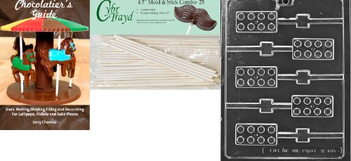 Cybrtrayd 'Building Blocks Lolly' Kids Chocolate Candy Mold with 25 4.5-Inch Lollipop Sticks and Chocolatier's Guide