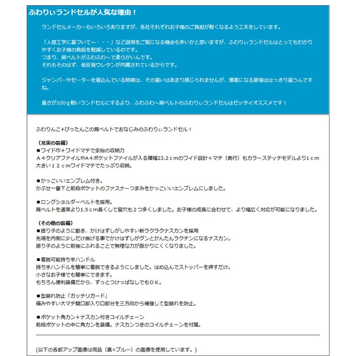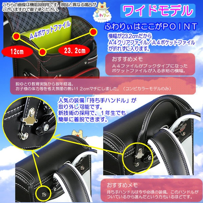 원본상품명: 2016-2018年度モデル送料無料ふわりぃコンビカラ?ランドセル≪ダブルワイド/?力耐傷素材レミニカ使用≫A4ブックファイル??ランドセル ?れ筋
