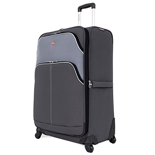 -. Title : 28" Soft-Sided Spinner Suitcase Color: Black/Grey