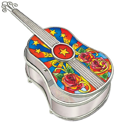 Amia Rock 'n Roll Guitar Musical Jewelry Box, Hand-Painted Glass, 9-1/4-Inch Long