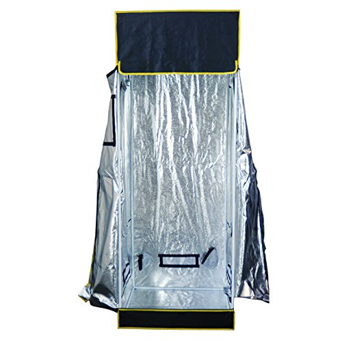 -. Feature : 32" Wide x 32" Deep x 84" High (2.75' X 2.75' X 7'), 1/2" Powder coated Steel Frame & Light Hangers / 900D Canvas Exterior, 100% Reflective Tear-Proof Mylar Interior, Non-Toxic Materials (No off gassing) / 99.9%+ Light Protection, Canvas overlay on zippers, Double Stitched Fabric / Heavy Duty Durable Zippers, Large Full Sized Doors, Double Sided Sock with Drawstring on all Velcro Ports / 6" & 4" Access Ports, Storage Pockets, Air Intake Vents, Adjustable Hanging Straps, Removable Mylar Spill Floor