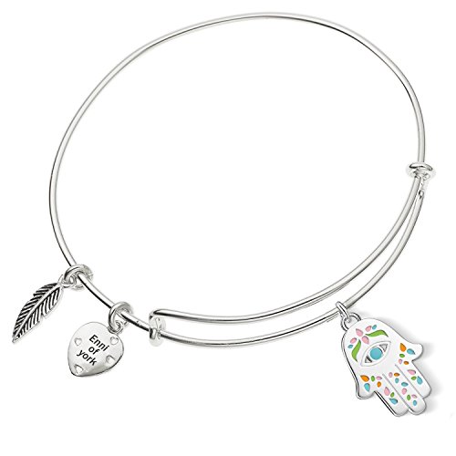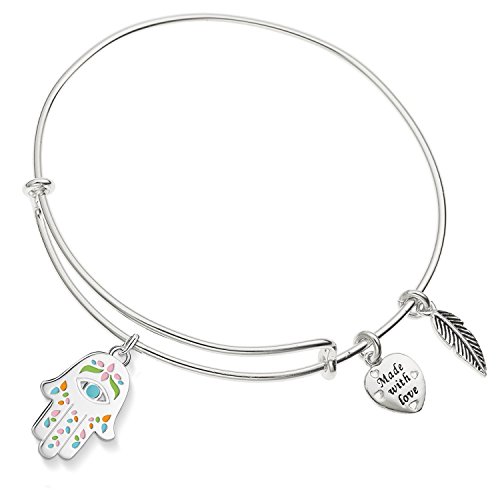 Enni of York Mexican Hand of Fatima & Nazar's Eye Path of Symbols Ani-Silver Expandable Bangle Bracelet