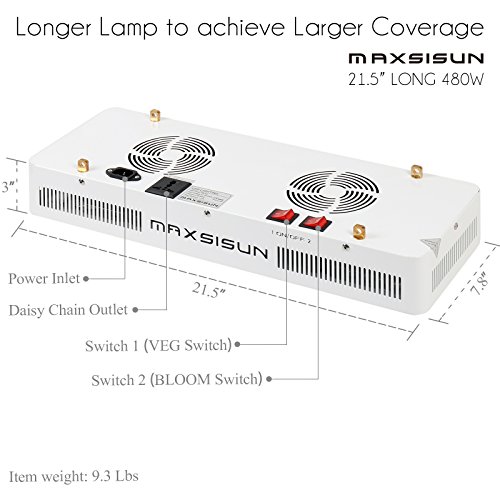 -. Feature : MAXSISUN LED Grow Light, 12-band Dimmable/Programmable Full Spectrum for Indoor Hydroponics Plants Veg and Flowering