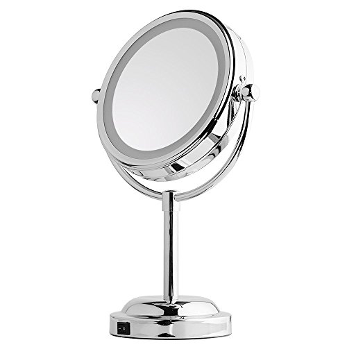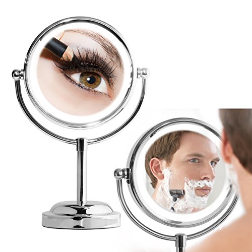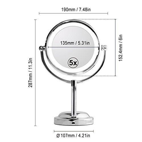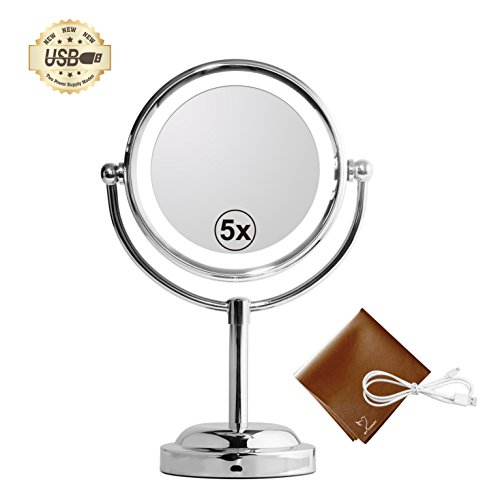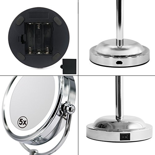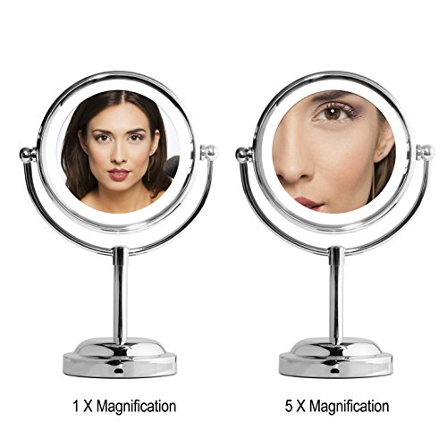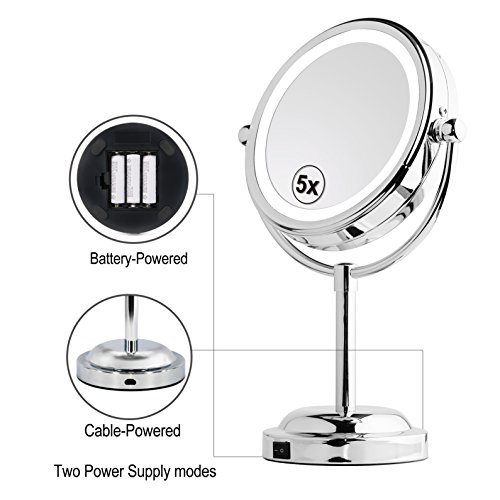 Mirror With Lights - MY CANARY LED Makeup Mirror With Battery /USB Powered,1x/5x Magnifying Light Up Mirror,Double Sided Vanity Mirror For Bathroom Or Bedroom Countertop,Desk Mirror With 360° Rotation