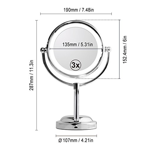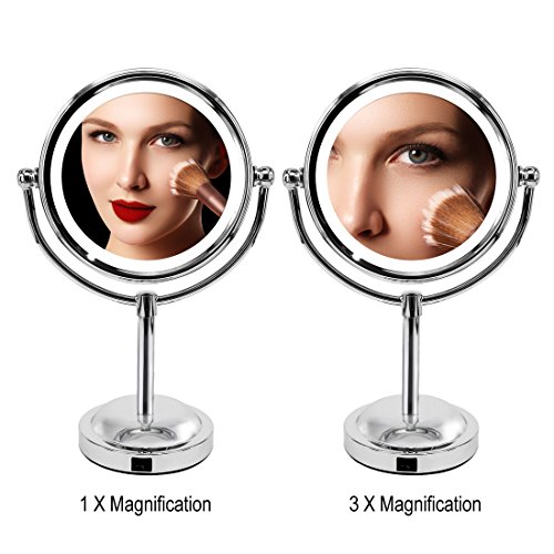 Mirror With Lights-MY CANARY 6in LED Lighted Makeup Mirror,1x/3x Magnifying Double Sided Light Up Mirror,Vanity Mirror For Bathroom/Bedroom Countertop,Portable Desk Mirror With 360°Rotation,Cordless