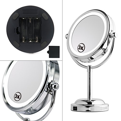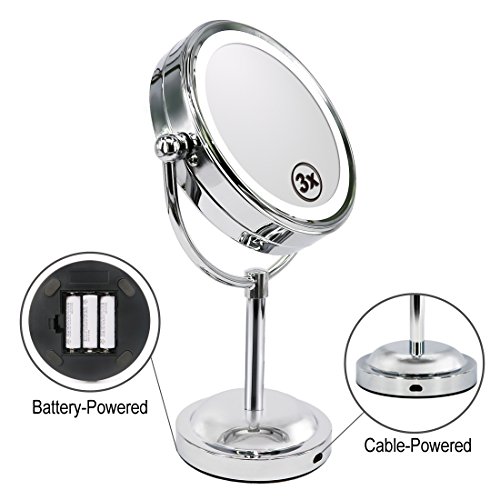 Light Up Mirror - 6in LED Makeup Mirror With Battery /USB Powered,1x / 3x Magnifying Vanity Mirror With Lights, Double Sided Mirror For Bathroom Or Bedroom Countertop, Desk Mirror With 360° Rotation