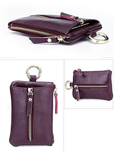 Aladin Womens Leather Key Case/ Zipper Coin Purse/ Card Holder Wallet (KC002) A multifunctional leather key case, designed to holds keys, credit cards and change in one mini bag. There are 6 metal key hooks on the outside for home keys. And to prevent items get scratched with keys, it has a zipper closure cover. It also can be use as a coin purse. There is a zipper pocket, which you can put some cash and coins in. Besides, we add a card holder compartment inside this pocket, which can separate your cards from cash or something else, and also keep cards right under the zipper closure, that means you can easy take your cards out. If you are a lady who looking for a small key holder wallet to organize keys and some other little objects, this will be a nice choice. About Aladin: We devote to provide special design personal items, especially in leather product such as womens wallets, mens wallets, card cases, and various bags. All Aladin products have at least 3 months guarantee, some are longer. Thank you for choosing Aladin. 0