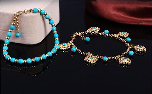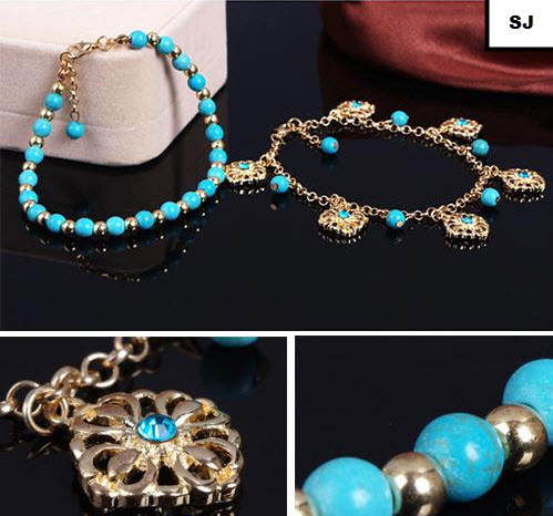 Dirancang oleh pirus rantai ditambah manik-manik bunga rantai rumbai, Pergelangan kaki ini gelang ini sangat fashion dan menarik dalam gaya bohemian dan itu akan membuat kaki Anda lebih menarik dan membiarkan Anda menjadi lebih seksi.