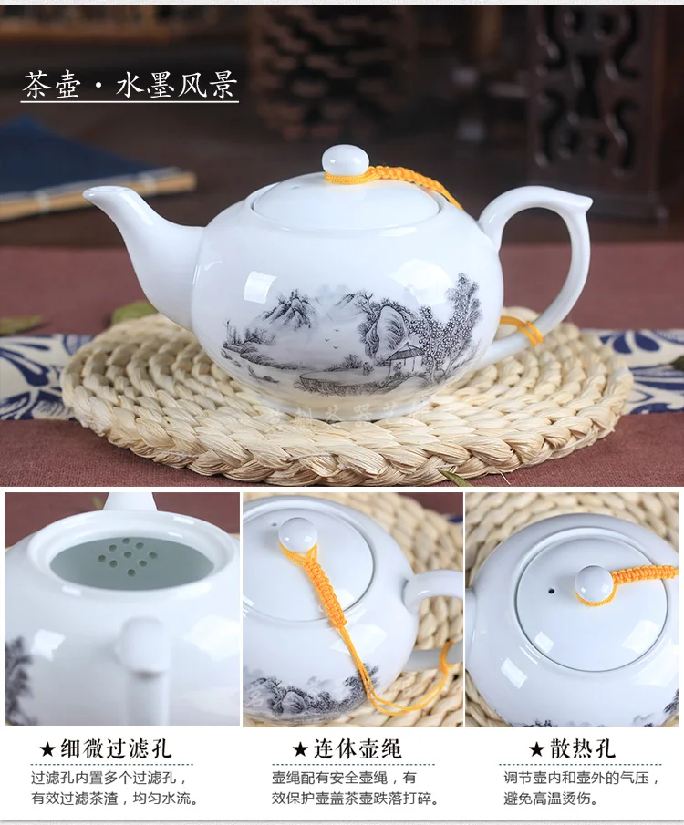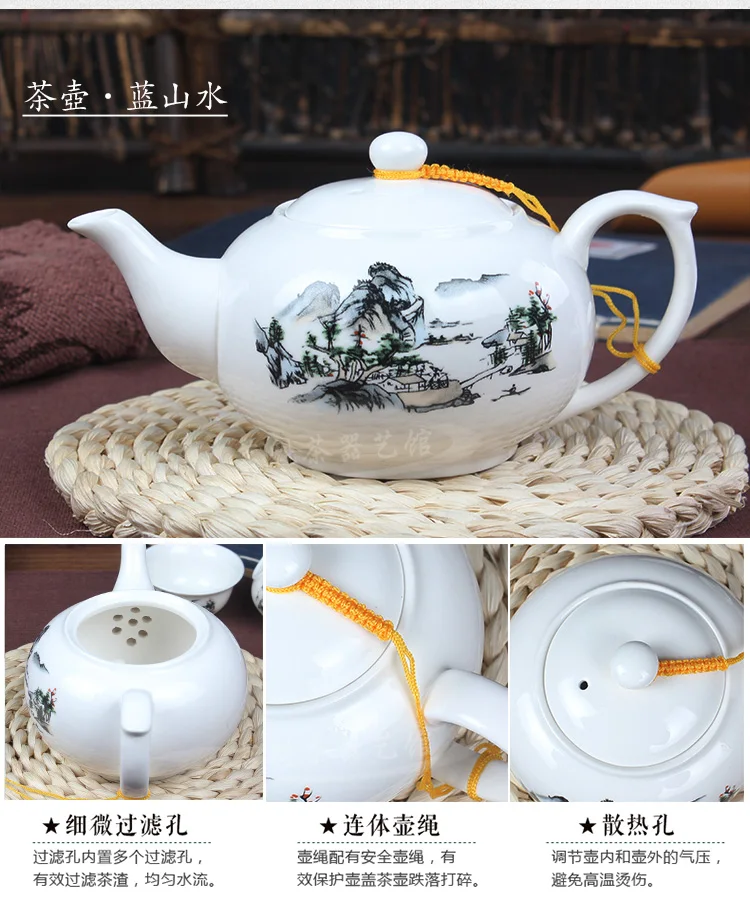 Color classification:Blue and white porcelain teapot [] [blue and white ink landscape jade