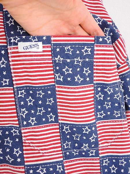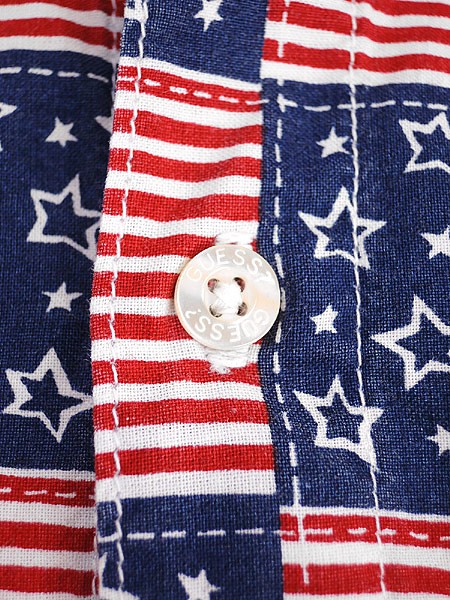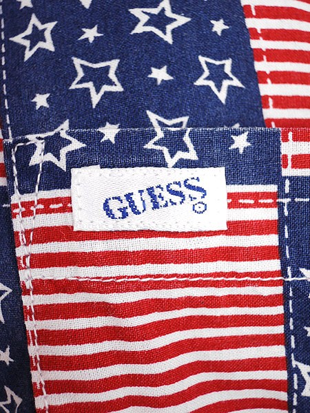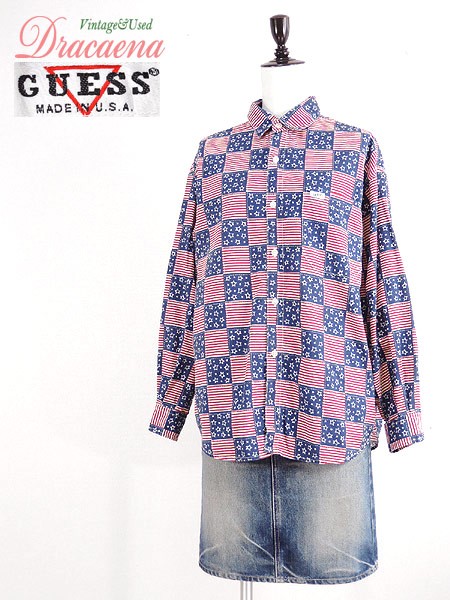 Ladies ブランドGUESS ゲス カラー赤・青・白 メール便可 コンディション★★★ 素材コットン 表記サイズM 実寸サイズ 着丈 71 cm 身幅 58 cm 肩幅 48 cm 袖丈 52 cm ※ウエスト・ヒップ以外は平置き採寸【code】#e