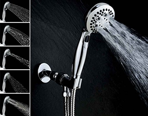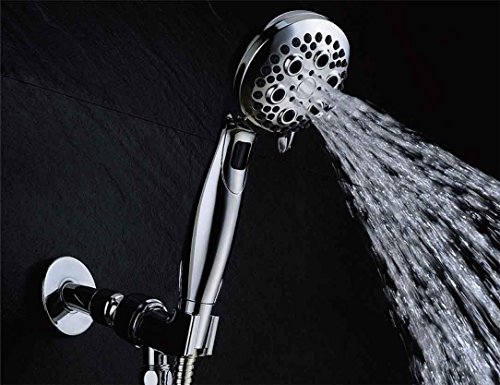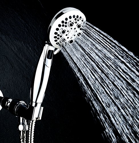 PREMIUM QUALITY AND 9 SPRAY SETTINGS: Wide Full Coverage and Anti-Leak modern Design. Lasting Finish Resists corrosion & wear. Can be used as Overhead or Handheld shower. Ergonomic Grip Handle. One finger control Multi-Power Dial. EcoSwitch Button reduce water flow and save. 9 sprays: power spray, power massage, power spray+massage, Power Rinsing Spray, Water saving trickle( save water and keep your shower warm while you shave or shampoo) and 4 Ecoswitch sprays .