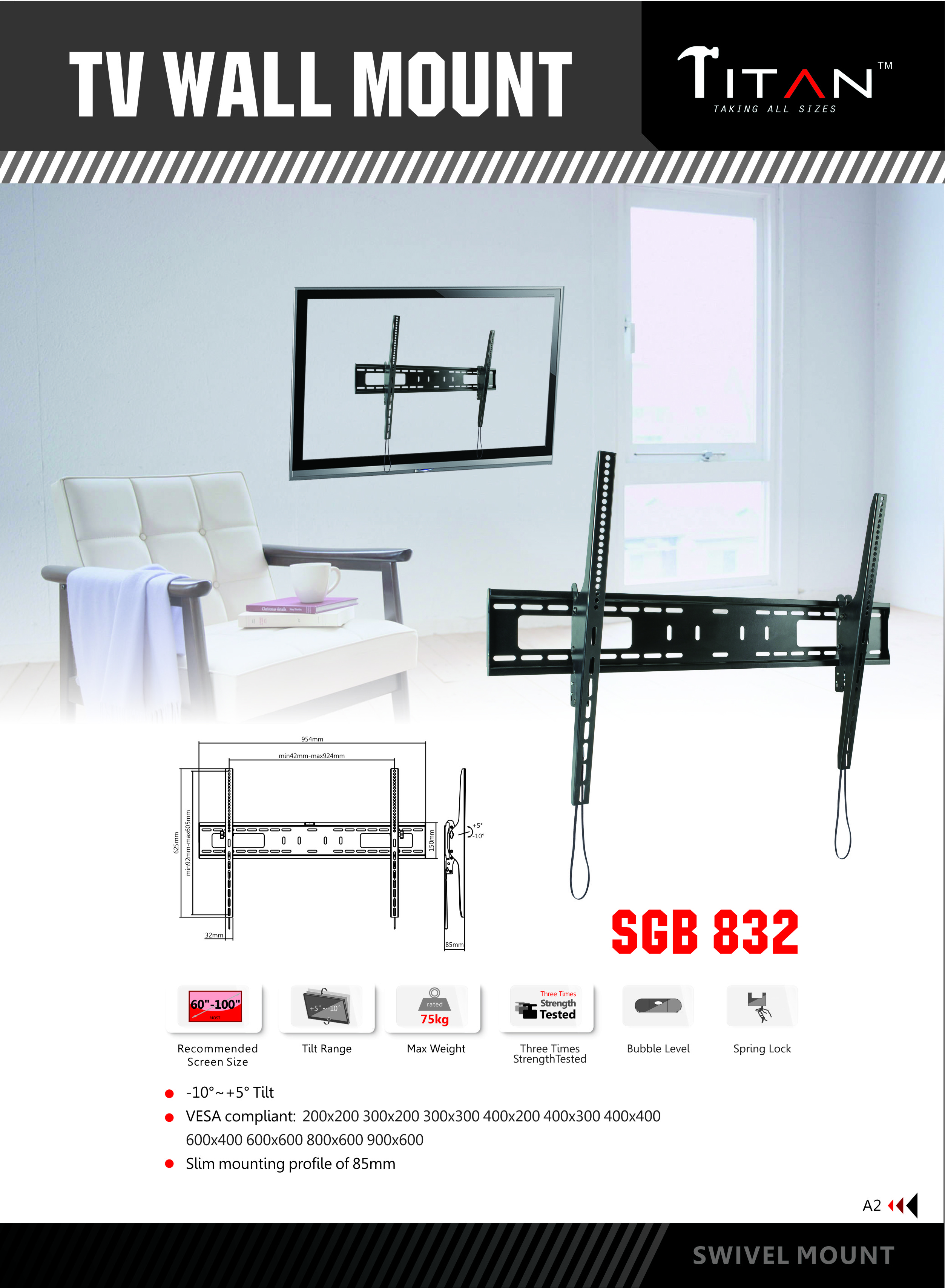 ·u0026nbsp;u0026nbsp;u0026nbsp;u0026nbsp;u0026nbsp;u0026nbsp;u0026nbsp;u0026nbsp; Model – SGB 832 TILTINGu0026nbsp;BRACKET