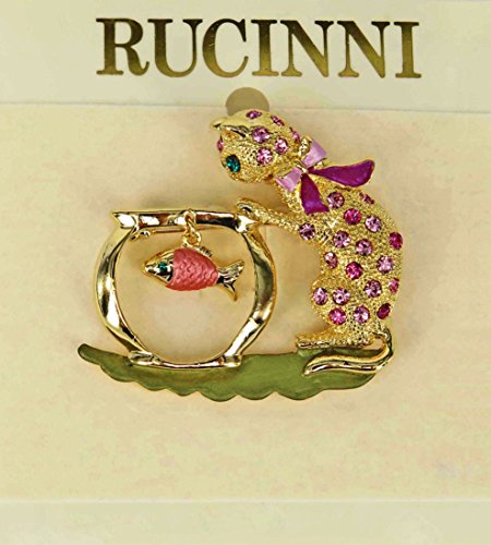 -. Title : Playful Cat Brooch with SWAROVSKI Crystals