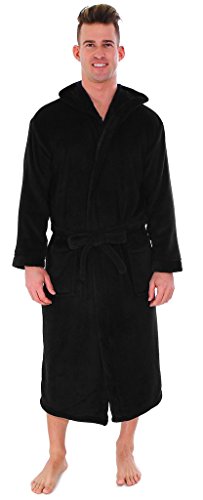 EPYA MEN'S CORAL FLEECE LONG HOODED BATHROBE ROBE DRESSING GOWNS