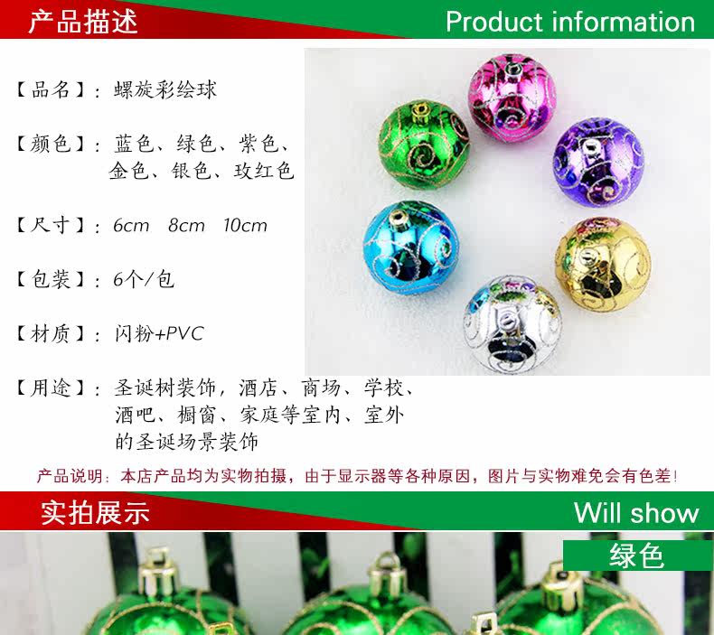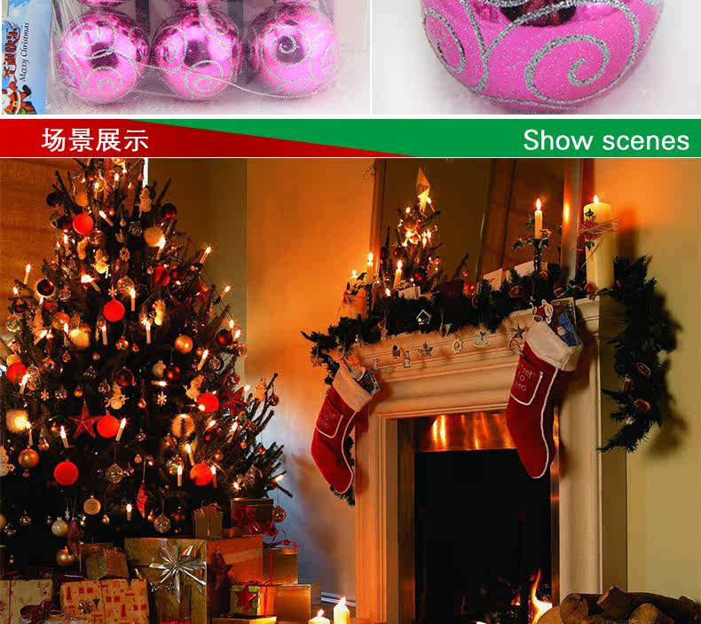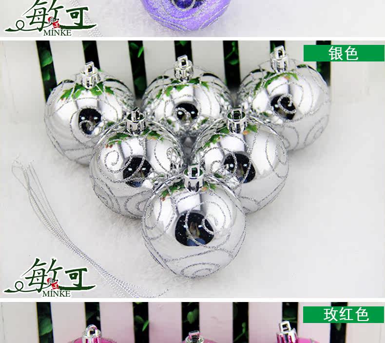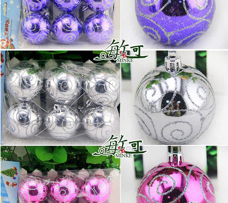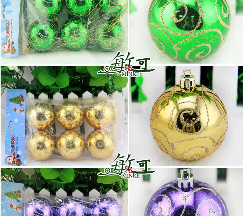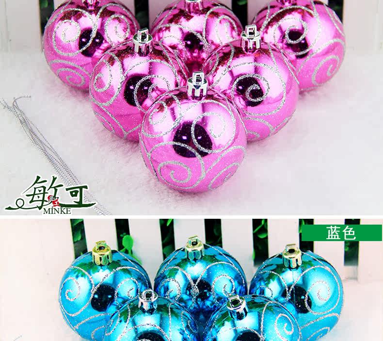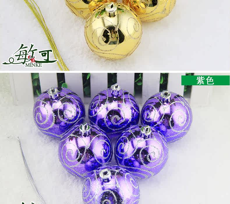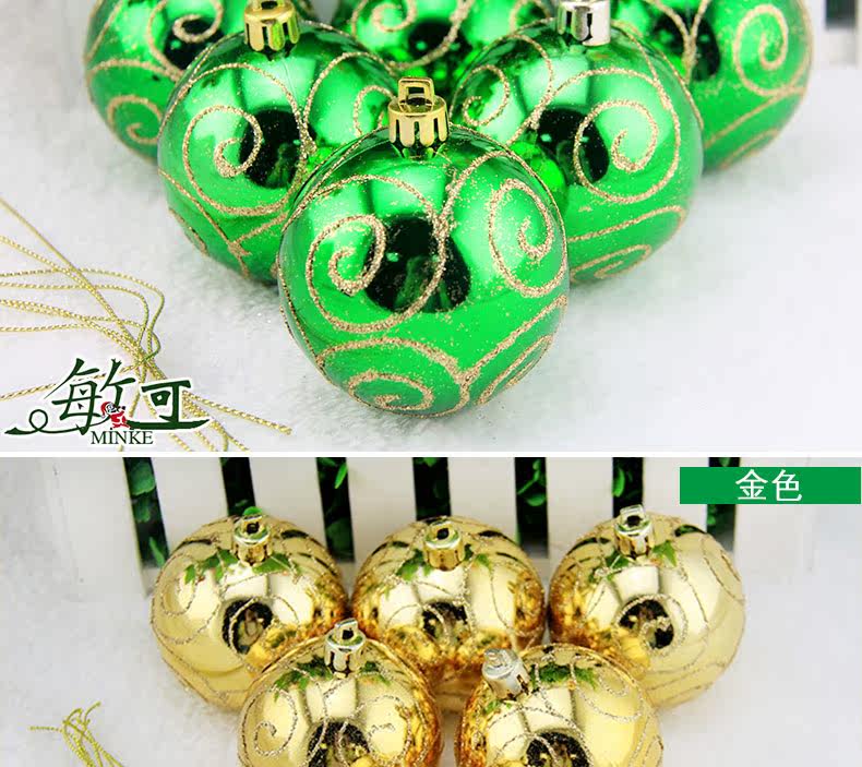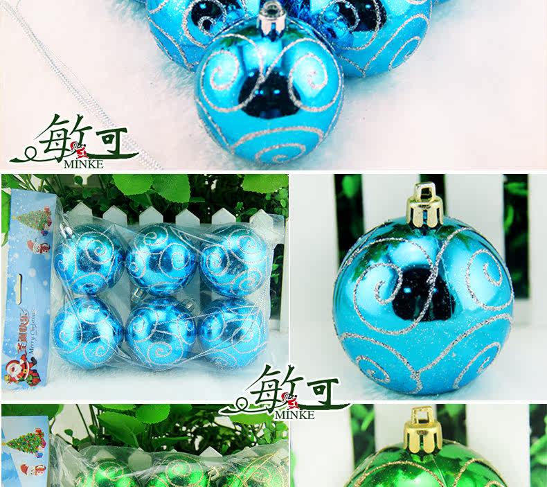 敏可 8cm亮光高档彩绘圣诞球圣诞树配饰 电镀圣诞彩绘球 多色可选