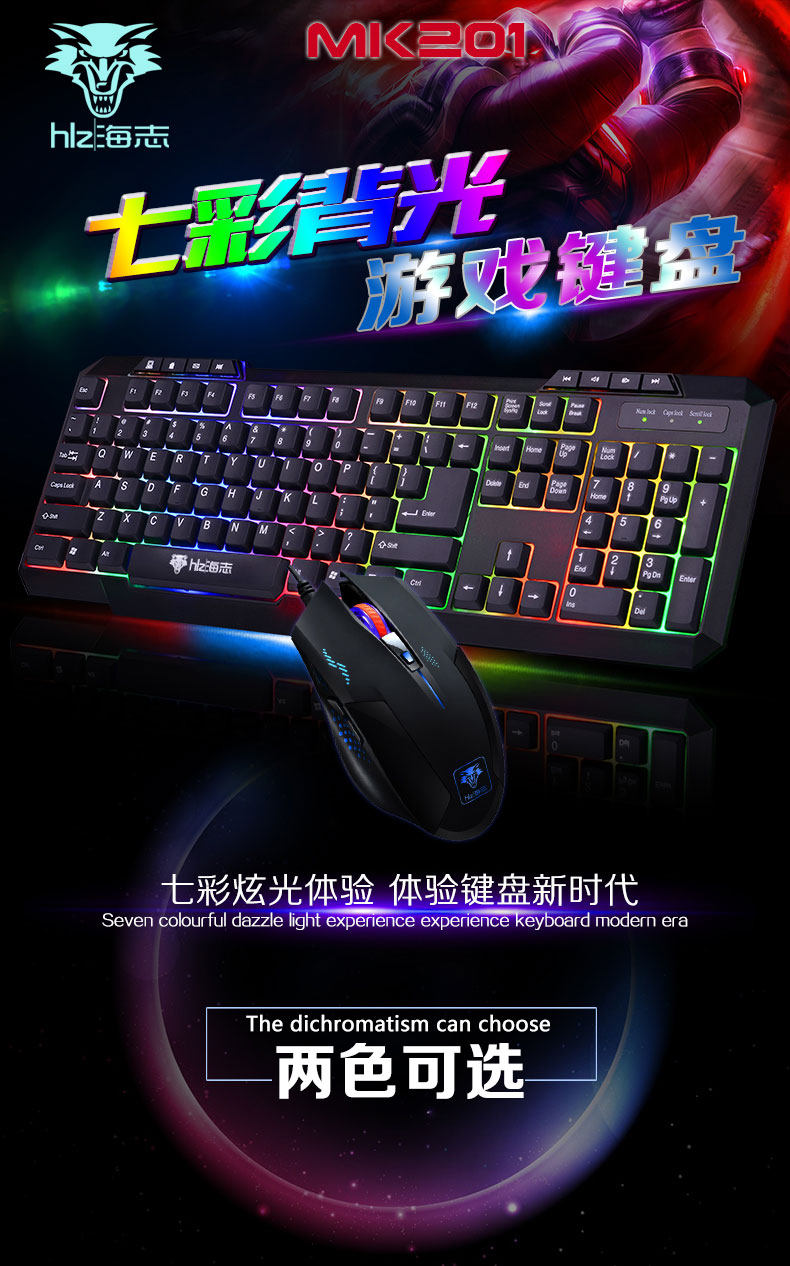 有线发光键盘鼠标套装背光键鼠套装电脑通用家用游戏套装mk201
