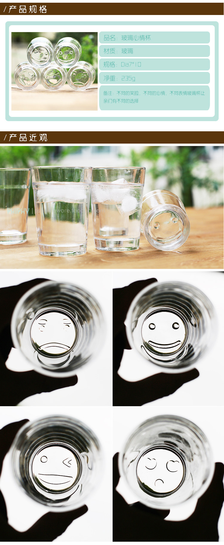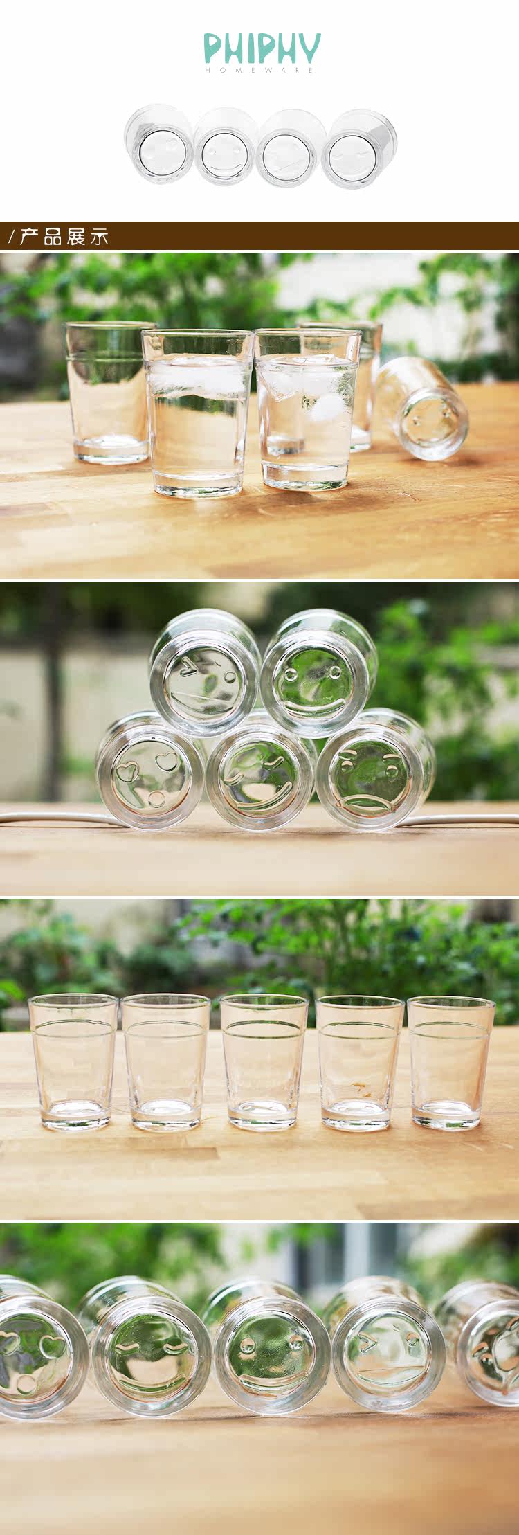 家用玻璃水杯笑脸表情杯果汁咖啡杯5个装套餐创意杯子套装