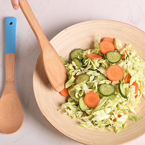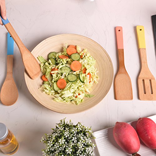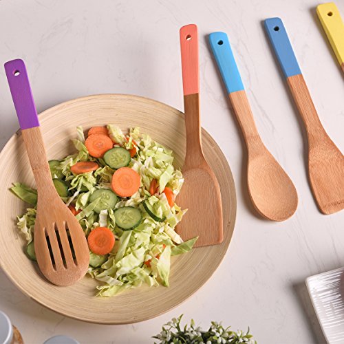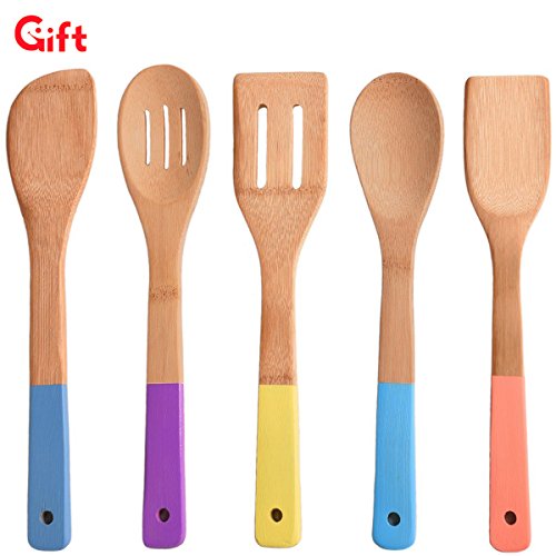 (Shaco)/Kitchen Dining/Tableware/DIRECT FROM USA/Shaco 5 Piece Bamboo Spoons Cooking Utensils, Wooden Spoons and Spatula Utensil Set With Colorf...