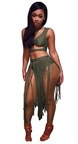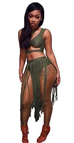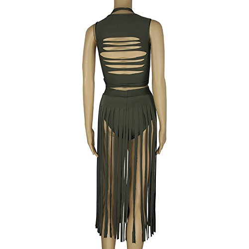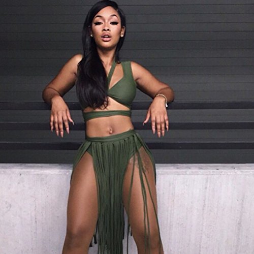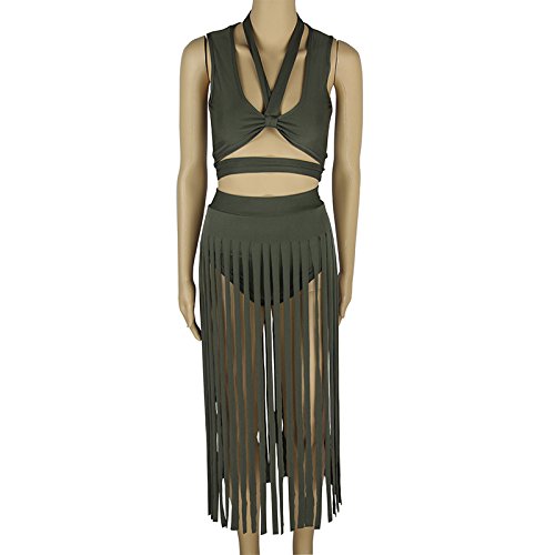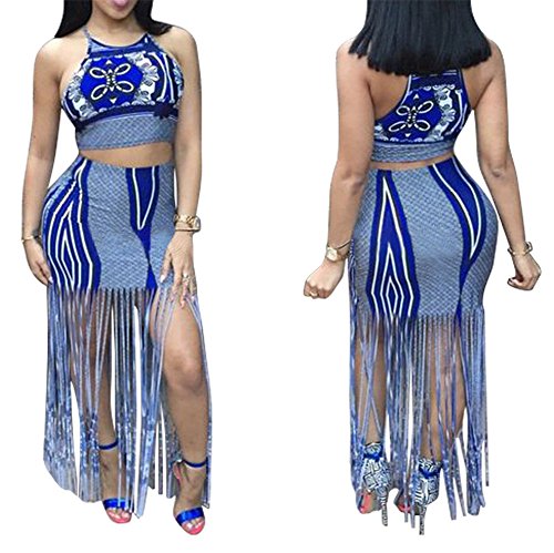 Womens Sexy 2 Pieces Outfits Backless Wrapped Crop Top Tasseles Skirt Club Dress Fashion and elegant design,Great for casual wear, parties, night out,bar or clubs
