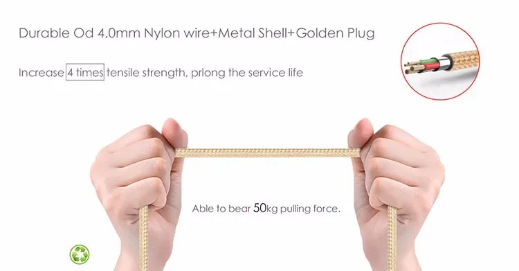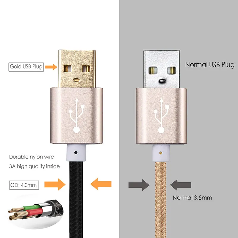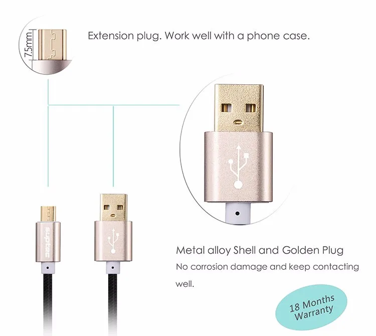 Features:Nylon Line and Gold-Plated Microusb Plug USB Cable