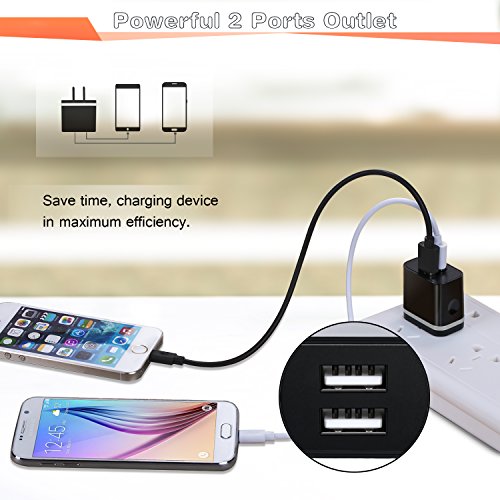- Powerful Capacity: Wide voltage range matches different safe voltage standards.Dual-USB output with total current 5V/2.0A and input with 100-240V enables you enough to charge two device together Charging and save time.(Warm Tip--We suggest that you should just charge your ipad,table or Samsung Galaxy S7 and other support over 2.0A Current smartphones separately to make a longer lifespan)