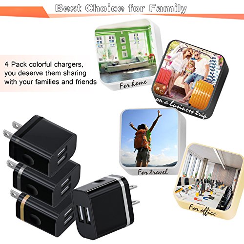 - Warranty & What you get:4 pack colorful 2 port wall chargers back-up charger at home,or wherever.12 months warranty by Canjoy.We will take responsibility for any un-expectable issues.